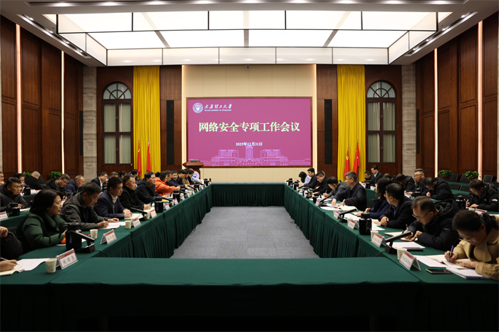为深入贯彻总体国家安全观,落实《网络安全法》《数据安全法》等法律法规及教育行业要求,全面筑牢浦京网络安全屏障,12月31日下午,浦京网络安全专项工作会议在明向校区鹏飞会堂召开。校党委书记沈兴全、副校长桑胜波出席会议,各职能部门、二级学院、群团组织和教辅单位负责人参加会议。会议由桑胜波主持。