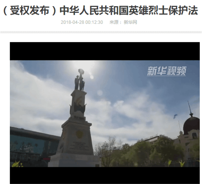 新华网:(受权发布)中华人民共和国英雄烈士保护法