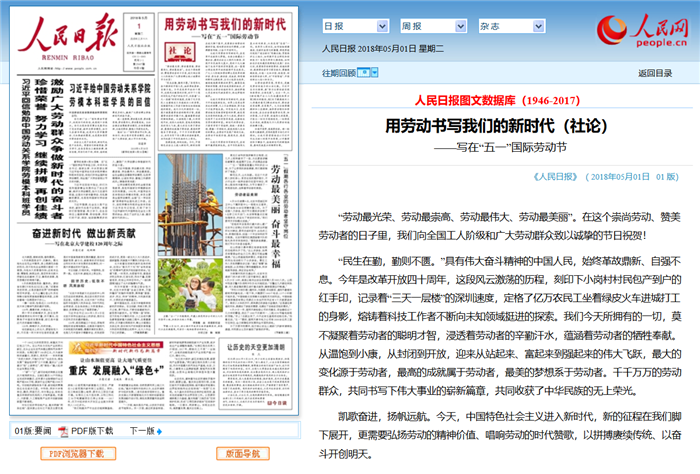 发布时间:2018-05-01 来源:人民日报 作者:人民日报