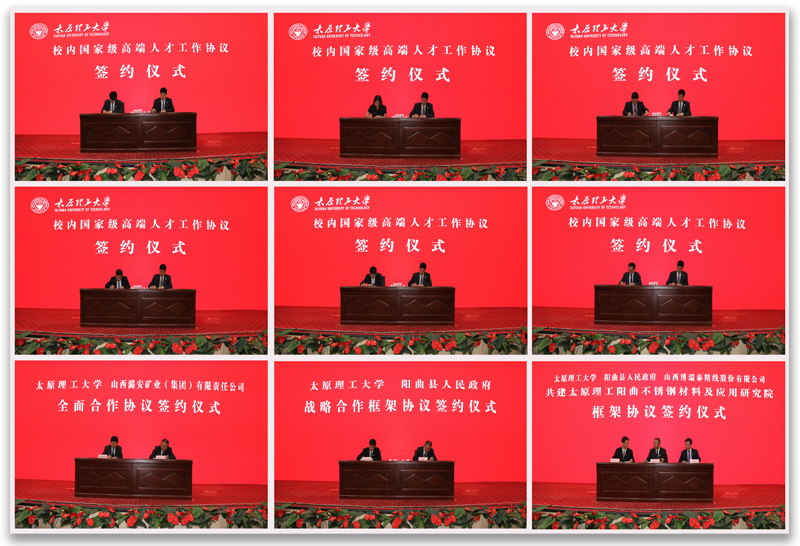 产学研合作签约仪式由副校长李晋平主持。副校长树学峰代表学校与潞安集团签署全面合作协议、与阳曲县签署战略合作框架协议、与山西博瑞泰精线股份有限公司签署共建协议,双方将优势融合、共赢发展、携手并进,为山西转型综改、创新驱动、振兴崛起做出贡献。