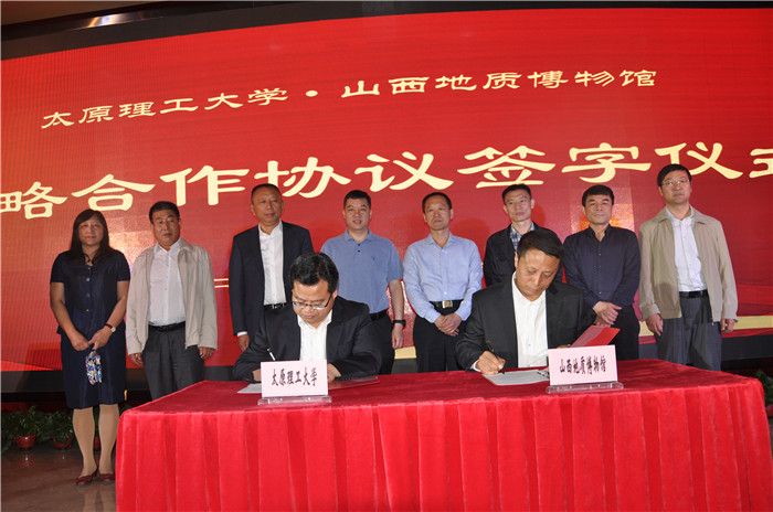 为了更好地深入实施国家创新驱动发展战略、加快推进地质科技创新发展,实现用科技创新解决重大资源环境问题和地球系统科学问题,5月13日,在山西地质博物馆,浦京与山西地质博物馆举行签署战略合作框架协议仪式。山西省国土厅袁同锁副厅长、财务处处长潘俊刚、储量处处长路瑞田、宣传中心主任郭锋,与副校长吴斗庆、树学峰,矿业工程学院相关负责人见证了战略合作框架协议签字过程。矿业工程学院负责人代表学院与山西地质博物馆馆长史建儒签署战略合作框架协议。