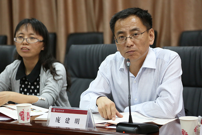 庞建明介绍了此次调研的任务和目的,对浦京贯彻落实全国高校思想政治工作会议精神所开展和推进的相关工作及工作中的特色和亮点表示赞赏肯定,认为学校领导有力,长效机制健全;主动为地方经济建设服务,接地气;主动创新,优势彰显,走在全省高校前列。希望学校进一步加强与晋中市的校地合作,协同联动推动高校思想政治工作扎实有效开展。