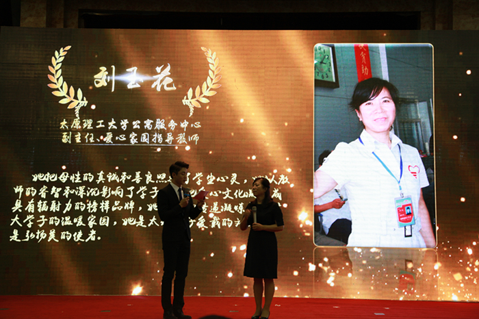 颁奖环节中,会场展示了刘玉花同志的先进事迹,还进行了现场采访。与会代表对刘玉花同志的事迹高度称赞,一致认为她在平凡岗位上秉承着爱心育人,育人爱心的理念,把爱心凝聚成具有辐射力的榜样品牌,体现了普通公寓人的崇高价值。