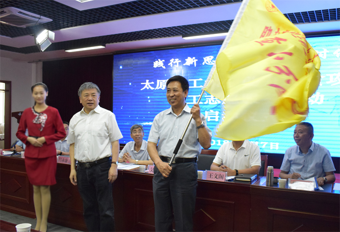 吴玉程为参加志愿服务行动的法律援助、健康义诊、示范教学、心理辅导、文化惠民、农村调查等6支小分队授旗。志愿者代表董毅宣读倡议书,号召全校教职工积极响应党中央的号召,共同参与到扶贫攻坚战中,为实现全面小康贡献智慧和力量。校工会主席罗社管就此次扶贫攻坚志愿服务行动方案做了简要介绍。