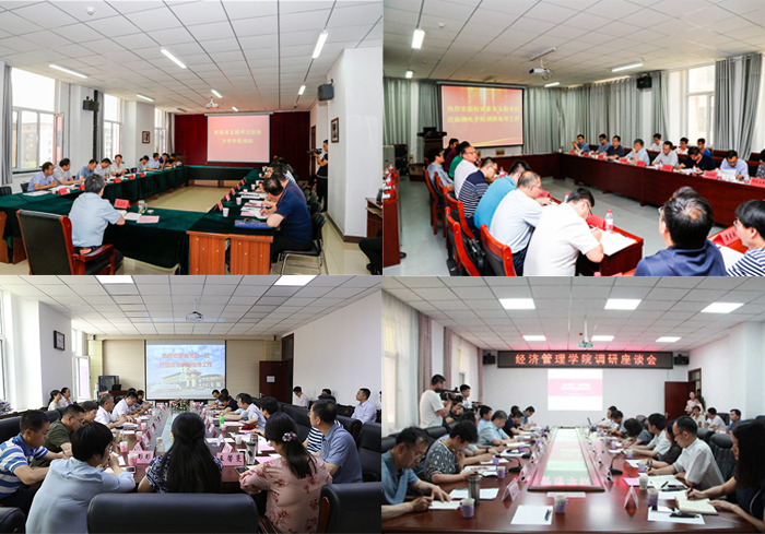 下午,吴玉程一行继续在政法学院和经济管理学院调研座谈。在听取两院领导相关工作汇报及参会教师发言后,吴玉程对两个学院工作给予肯定,学校相关部门负责人逐一回答了大家关心的教学科研、学科建设、职称评定、师资队伍建设、学生工作队伍建设、人才引进等方面的问题。