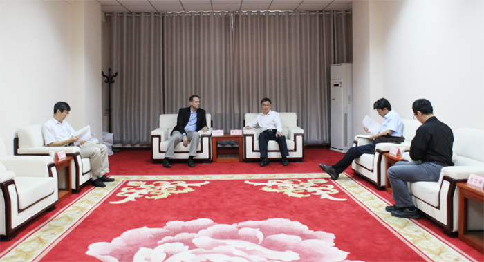 梁卫国与斯科姆比详细探讨了合作具体事宜。国际合作处负责人参加了会见。