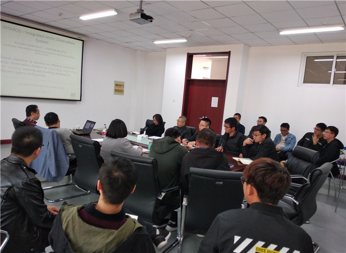 报告会上,程斌深入浅出地向在座师生介绍了关于极地海冰监测的相关背景、海冰热力学研究的最新进展、以及现场观测手段和HIGHTSI数值预报模式,并就师生提出的问题一一作了详细解答。