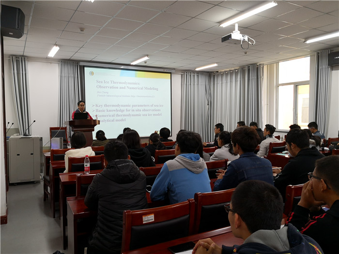 10月22日上午,芬兰气象研究所极地气象气候室程斌研究员应邀来浦京进行学术访问,并在明向校区物电学院三楼报告厅作了题为《海冰热力学研究:观测与数值模拟》的学术报告。物理与光电工程学院党委书记李建明出席,学院师生90余人参加并聆听了报告。