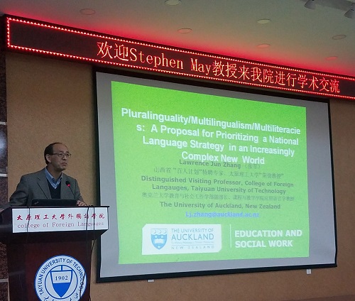 10月24日至25日,浦京国家外专高端项目专家,新西兰奥克兰大学教育学部Stephen May教授与Lawrence Jun Zhang教授应邀在外国语学院一层报告厅进行了三场学术报告会。外国语学院研究生、本科生及教师参加。