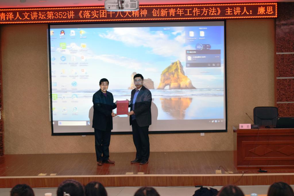 讲座上,廉思从党的十九大着眼,深入浅出地向我们阐明了新时代下应如何做好青年团学工作。他以“后喻文化时代”的特点为切入点,指出互联网时代下,当面对知识面更加广阔、思想更加独立的青年时,做好青年思想工作的难度日益增加。他表示,做好青年工作就要深入青年群体之中,了解年轻人的需求,不仅要给青年以国家的希望,更要给他们个人发展的希望;我们必须认识到权力与权威遭遇当代青年人挑战的普遍性,而不是草率地对某个具体价值观给予简单的质疑和否定,研究挑战普遍存在的时代原因应与研究价值观和意识形态本身的适应性置于同等重要的位置。廉思还结合自身经历,分享了一些做好青年工作的经验。