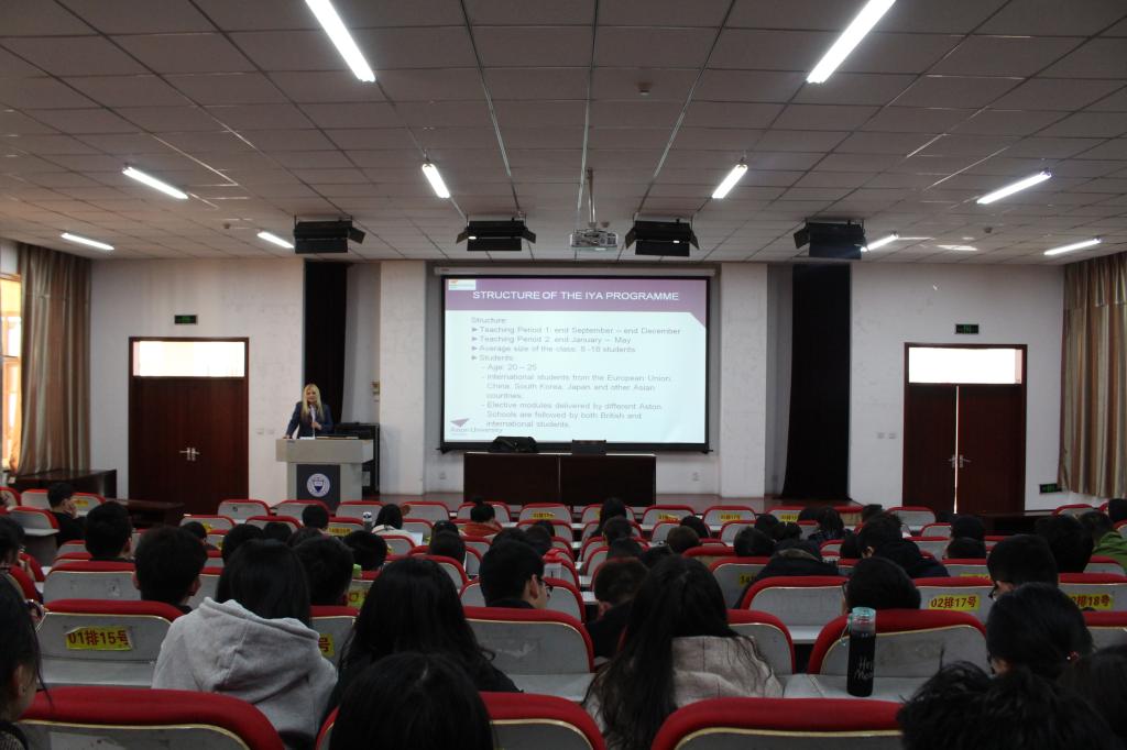 在经济管理学院,维斯耶克向学生详细介绍了阿斯顿大学国际年活动和暑期项目情况,与学生互动交流,解答了学生的相关问题。
