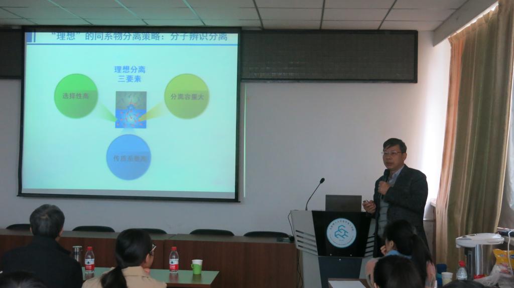 4月9日上午,浙江大学任其龙教授应邀在浦京化工馆三层会议室作了题为《同系物的分子辨识分离技术及应用》的学术报告,此次报告由化学化工学院院长董晋湘教授主持,浦京化工相关学科的师生参加了报告会。