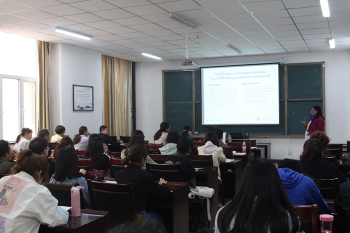 张海娜从作者和编辑的角度探讨了如何在国际顶级期刊上发表研究论文。首先,她对发表定性研究的挑战与机遇、发表论文对该领域的贡献以及论文对话的对象这三个方面进行了讲解。随后,她强调了论文的题目、摘要和引言的重要性。之后,她以一篇论文为例与大家进行了深入的探讨,并耐心解答了大家提出的问题。