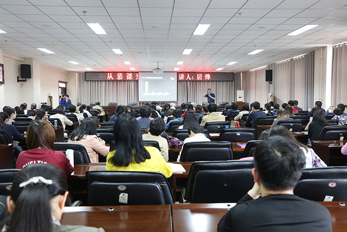 座谈会后,居烽老师在逸夫楼701报告厅作了题为《从慕课到金课》的专题讲座。教务部相关领导、校督导组专家、各学院教学副院长、课程负责人及相关老师100余人参加了讲座。