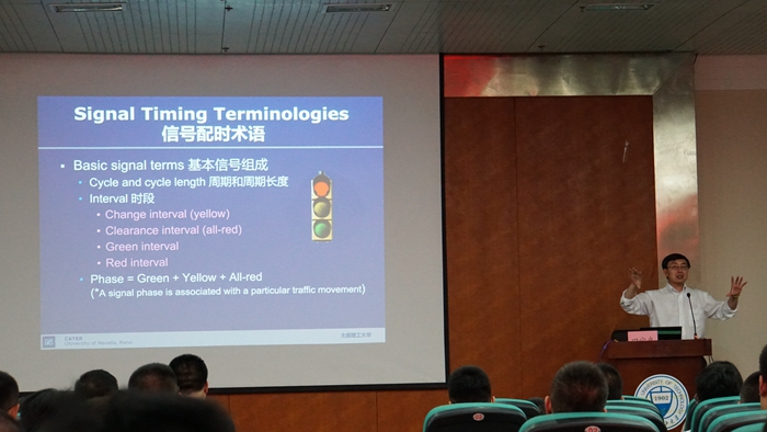信号控制是交通工程的一个重要分支,也是最接近实践和改善城市交通运营最有效的手段之一。田教授从信号控制基础出发,让听众学到和理解一些信号控制的基本概念,然后结合各种案例,就目前信号控制方面的关键问题和挑战进行阐述,并展示新技术和工具的实地应用,最后就未来信号控制的发展进行展望。田教授同与会的老师和同学进行了互动,就大家的提问进行了详细的解答。整个报告在紧张欢快的气氛中圆满结束。
