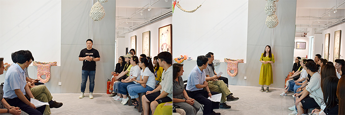 结业仪式上,意大利当代纤维艺术家Paola Anzichè,意大利艺术史学家、新媒体艺术家、米兰NABA新美院艺术史教授Francesco Bernardelli高度赞扬并肯定了浦京学子的动手能力、创造能力及团队协作能力,并表示,本次WORKSHOP主要目的是让学生在创作过程中学会思考;学会对不同材料进行探究;学会在艺术史理论的基础上,研究现当代艺术家的创作过程和创作背景。希望大家在今后的学习中更注重学生创作的过程,注重对材料本身特性的研究。