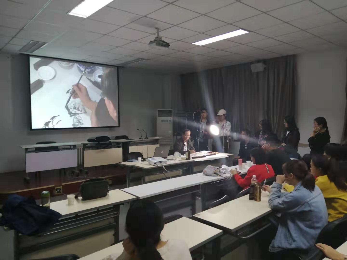 讲座以“中国画与中国文化”为主题。李教授立足于中西文化视野,植根于中国文化土壤,从艺术评价标准、艺术的本质、中国画理论研究与教学现状、中国画的振兴、中西方文化的不同、中国画的两仪一体性等六个方面展开,整场讲座逻辑严谨,视野宏阔,为美术系师生带来了一场斑斓多彩、深刻生动的艺术文化之旅。讲座结束后,李教授还为美术系师生展示了大量的创作作品,并为大家现场示范作画。从理论到实践,使师生对传统的中国绘画艺术有了更深刻的理解和领悟。