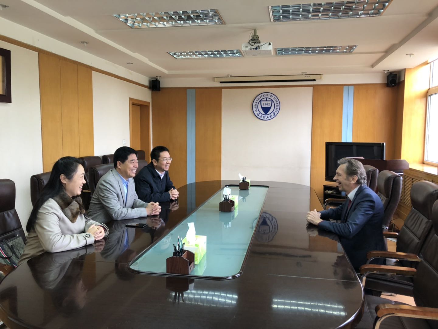 10月17日上午,在迎西校区行政主楼324会议室,副校长吕永康教授代表学校向来校进行学术讲学的新西兰奥克兰大学Michael Barlow教授颁发了350vip浦京集团官网客座教授证书,外国语学院党政负责人及相关人员参加。