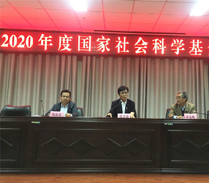 10月23日下午,2020年度国家社会科学基金动员会在浦京迎西校区逸夫楼701会议室顺利召开。省委宣传部副巡视员杨建军、省社科联副主席王志超、国家社科基金会评专家高闯教授莅临指导,副校长梁卫国出席会议,各相关院长,主管科研的副院长、科研秘书,博士、高级职称教师,以及申报2020年度国家社科基金或申报第十一次省社科优秀成果评奖的老师参加了会议。会议由科学技术研究院院长冯国瑞主持。