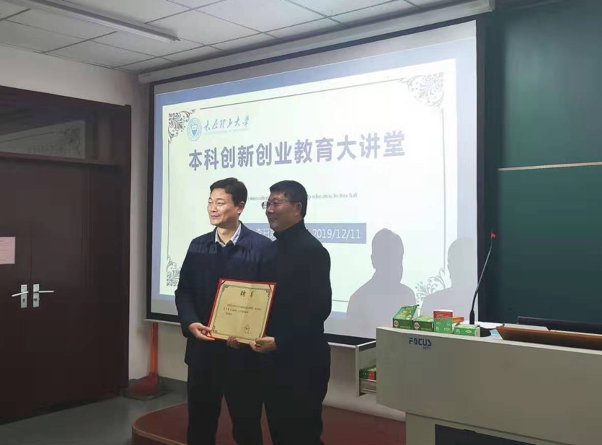 大讲堂中,黄雨田代表学校向李日泉同志颁发了创新创业导师证书,聘任李日泉同志为浦京创新创业导师,与会师生反应热烈。