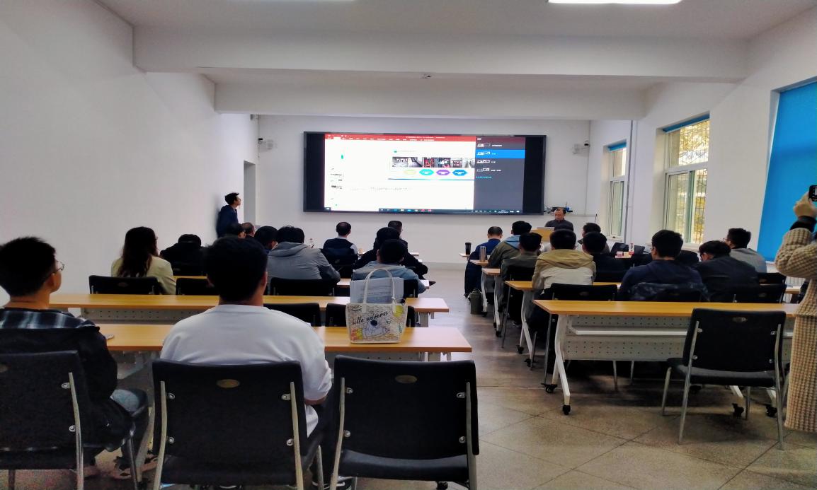 电气与动力工程学院党委吉育峰书记、副院长窦银科教授;山西省电气传动及物联网工程研究中心主任张军朝副教授、物联网开发部部长梁翼龙老师;山西合力创新科技股份有限公司副总经理吕金顺高工、综合能源服务平台研发经理王哲峰高工、调度数据网智慧平台研发经理杨凯敏高级程序师、人力资源部经理霍佳妮女士以及60余名研究生参加了研讨会。