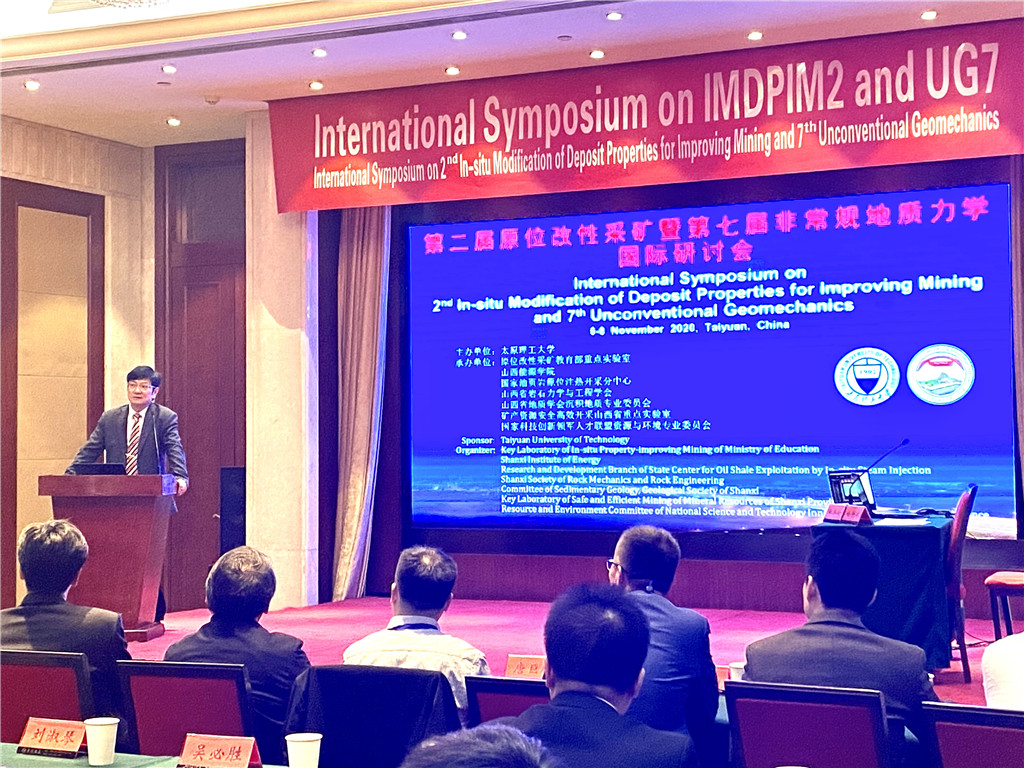 11月7日至8日,由350vip浦京集团官网主办、原位改性采矿教育部重点实验室、山西能源学院、矿产资源安全高效开采山西省重点实验室、国家油页岩原位注热开采分中心、全国科技创新领军人才联盟资源与环境专业委员会和山西省岩石力学共同承办的第二届原位改性采矿暨第七届非常规地质力学国际研讨会在山西太原举行。来自清华大学、浙江大学、上海交通大学、同济大学、吉林大学、东北大学、大连理工大学、重庆大学、中国矿业大学、中国地质大学(北京)、中国石油大学、湖南科技大学、昆明理工大学、辽宁工程技术大学、东北石油大学等高校、研究机构和知名企业的200余名专家学者参加了本次研讨会,会议还邀请部分国外院士、专家云端参会、线上进行了学术汇报。