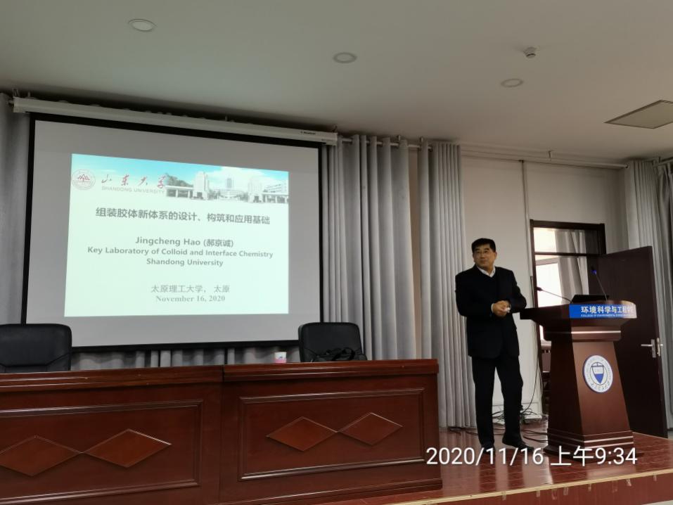 为了更好地促进学院科研工作发展,11月16日上午,环境科学与工程学院邀请山东大学化学与化工学院郝京诚教授在博睿楼A座405为广大师生作了题为《组装胶体新体系的设计、构筑和应用基础》的学术报告,环境科学与工程学院,化学与化工学院、煤化工研究所及山西大学部分师生代表聆听了报告。会议由学院副院长易群教授主持。