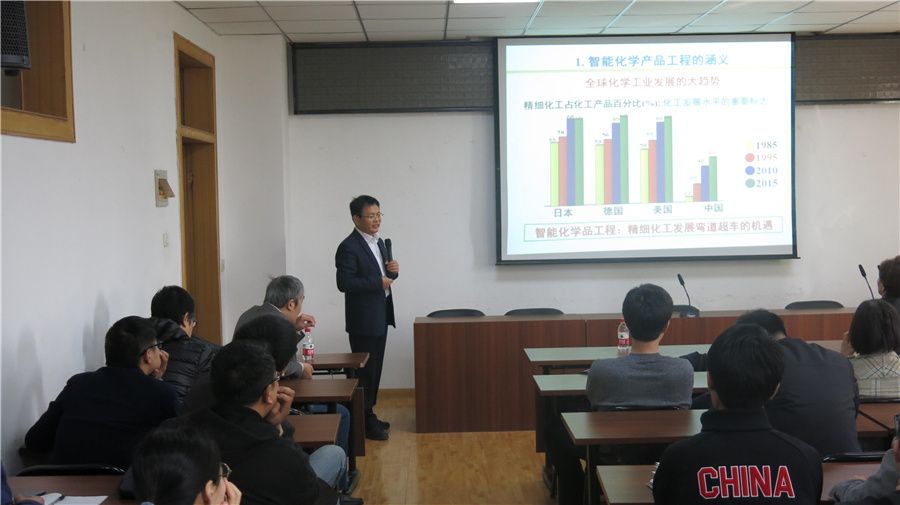 3月23日,大连理工大学彭孝军院士应邀在浦京化工馆三层会议室作了题为《智能化学产品工程》的学术报告,浦京相关学科的师生代表聆听了此次报告会,报告由化学化工学院院长董晋湘主持。
