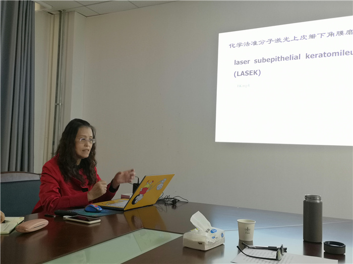 报告中,贺瑞主任结合生动的手术视频介绍了激光角膜屈光手术的类型、各类手术的优缺点以及临床手术中亟待解决的问题。贺瑞的报告让在座的师生更好地了解了临床手术的过程及原理,为师生的研究课题提供了新思路。