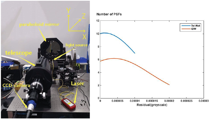 图3.左图为采集PSF的实验装置,右图为实测数据PSF估计残差分布。