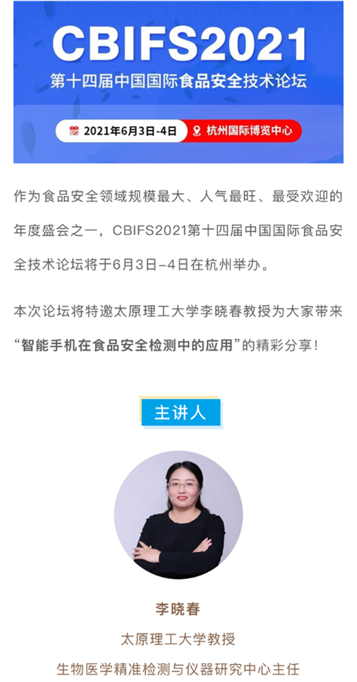 6月3日、4日,由太平洋国际展览创办的“CBIFS2021第十四届中国国际食品安全技术论坛”在杭州国际博览中心举办。本次大会由1个主论坛和11个专题论坛组成。来自检测机构、科研院所、高校和食品企业的专家带来了精彩学术报告。食品安全技术论坛是国内食品安全技术领域规模最大、人气最旺和最受欢迎的年度盛会之一,全面展示国内外最新食品安全技术和发展成果。