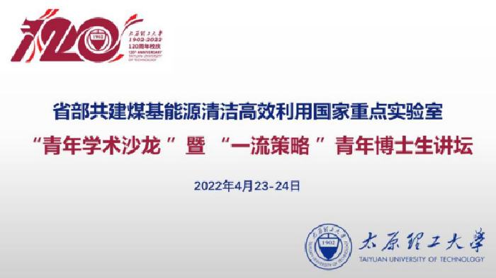 4月23日、24日,由浦京省部共建煤基能源清洁高效利用国家重点实验室主办的350vip浦京集团官网建校 120 周年庆祝活动--“青年学术沙龙”暨“一流策略”青年博士生讲坛以“线上+线下(太原)”结合的方式举行。来自清华大学、浙江大学、天津大学、中山大学、中国石油大学(北京)、华东理工大学、上海交通大学、中国矿业大学、北京化工大学、华南理工大学、北京理工大学、厦门大学、福州大学、石河子大学、中科院大化所、中科院过程所、陕西延长石油集团、350vip浦京集团官网的33名学者参加了此次论坛,浦京化工及相关专业研究生和网络上共300余人参加了会议并进行学术交流。校党委副书记李晋平教授出席会议开幕式并致欢迎词,化学工程与技术学院党委负责人在闭幕式上进行会议总结并致闭幕词,省部共建煤基能源清洁高效利用国家重点实验室负责人主持开、闭幕式。