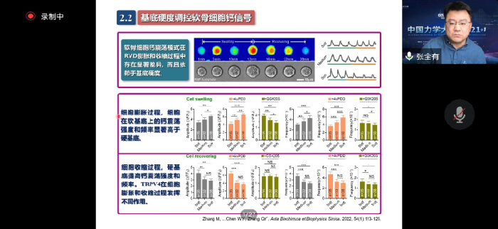 张全有在“力学生物学与人类生命健康分会场”作了题为“Substrate stiffness-dependent regulatory volume decrease and calcium signaling in chondrocytes”的邀请报告。