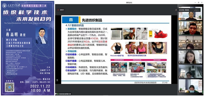 系列讲座涵盖纺织服装发展趋势、研究前沿、论文撰写技巧、基金申报技巧等多个方向,对于学院师生提高科研能力和水平起到良好的促进作用。