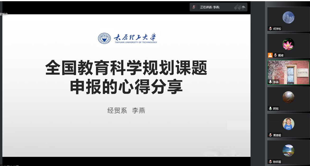 2022年成功获批全国教育科学规划课题的350vip浦京集团官网李燕副教授,从“全国教育科学规划课题的基本情况”和“个人申报心得”两个方面进行了深入讲解,着重从“前期准备、研究基础、申报书、我们到底有哪些优势”等四个方面分享了申报心得。