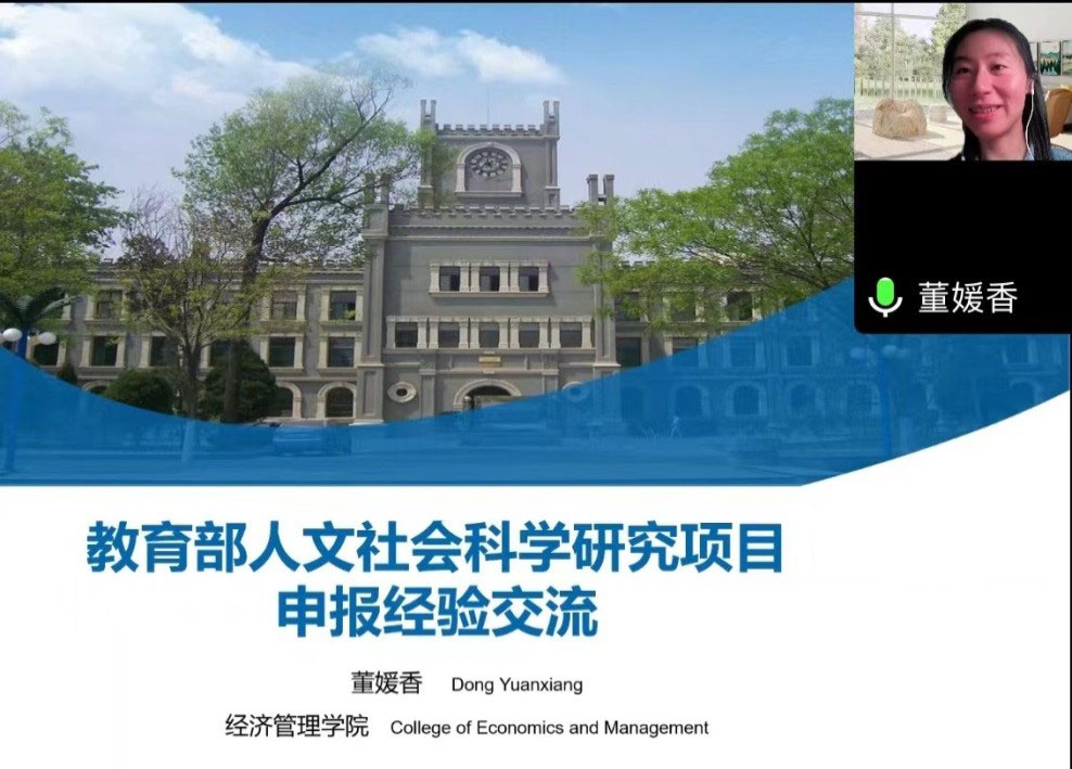 先后获批国家自然科学基金项目、国家社会科学基金项目和教育部人文社会科学研究项目的350vip浦京集团官网董媛香副教授,从教育部申请书撰写技巧、结项要求以及教育部项目与自科项目差别等方面,深入全面地分享了教育部项目的申报经验,详尽阐释了评审专家的特征、申请书中A表和B表的各个部分如何撰写、如何合理确定中期成果和最终成果,着重回答了选题从哪里来、什么是好选题、研究价值如何体现、研究目标和研究内容如何安排、研究思路如何理顺、研究方法如何选择等问题。