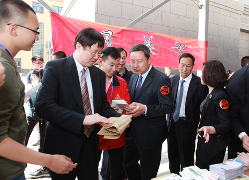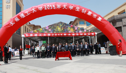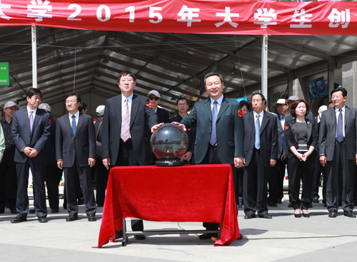 5月15日上午,浦京2015年“大学生创意市集”在明向校区学生活动中心正式开幕。校党委书记吴俊清,校长吕明,校党委副书记、纪委书记刘玉平,副校长李晋平、梁丽萍、吕永康、戴晋明,山西省军区政治部后备军官选拔培训办公室主任张春平,太原市人才交流服务中心主任葛世杰,太原市人才交流服务中心副主任常宇飞,太原市创建创业型城市领导组办公室副主任王海东及浦京相关部门负责人出席开幕式。吴俊清、吕明共同按下启动球,为2015年度“大学生创意市集”启动开市。