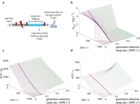 研究团队引入了两个关键预警指标:可用逃生时间(AET)和可用气体管存(ALP)。AET表示电力系统在气网故障发生后的剩余反应时间,ALP表示在气体系统故障发生后,仍可供受影响燃气轮机正常运行的管道存气量。基于这两个指标,EPCC可以在无需其他气网信息的情况下制定适当的电力系统主动控制策略。
