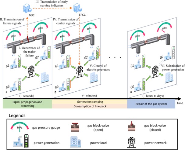 研究团队设计的气电连锁故障早期预警系统,类比地震预警原理,利用气网真实故障传播速度远低于预警信号传播速度的物理特性,通过及时传递气网故障信息并进行电力系统的主动控制,有效降低了气网故障对电力系统的负面影响。该系统的核心在于利用故障传播延迟,使电力系统在故障影响到达前进行主动调整。