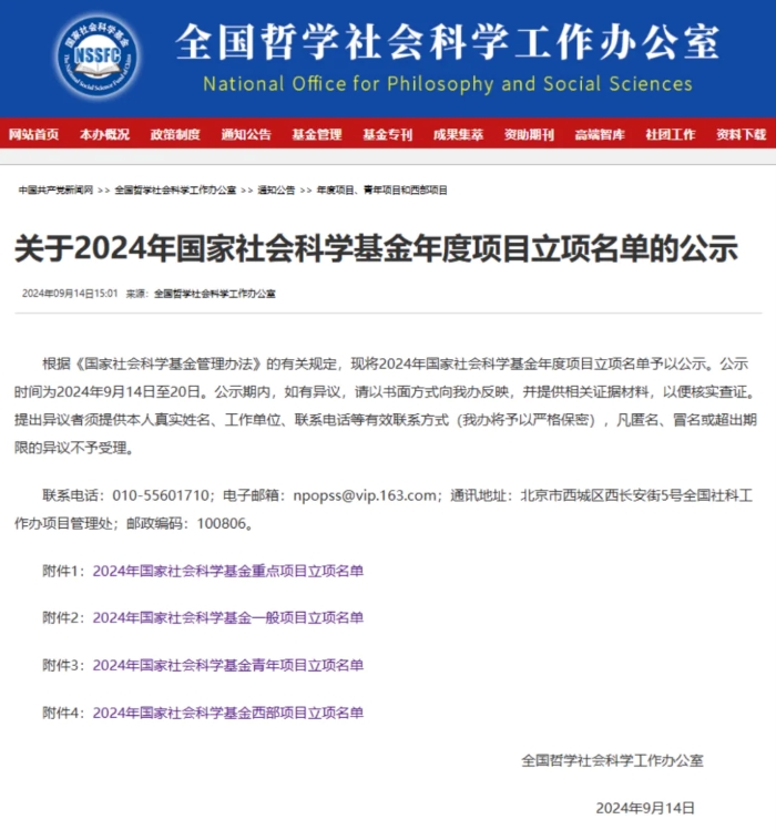 近日,全国哲学社会科学工作办公室发布了《关于2024年国家社会科学基金年度项目立项名单的公示》,浦京6个项目入选国家社会科学基金立项公示名单。其中,国家社会科学基金一般项目2项、青年项目4项。