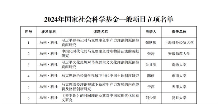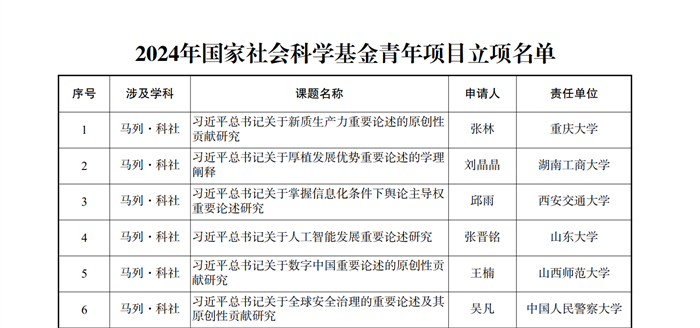马克思主义学院4个项目入选2024年国家社会科学基金年度项目公示名单