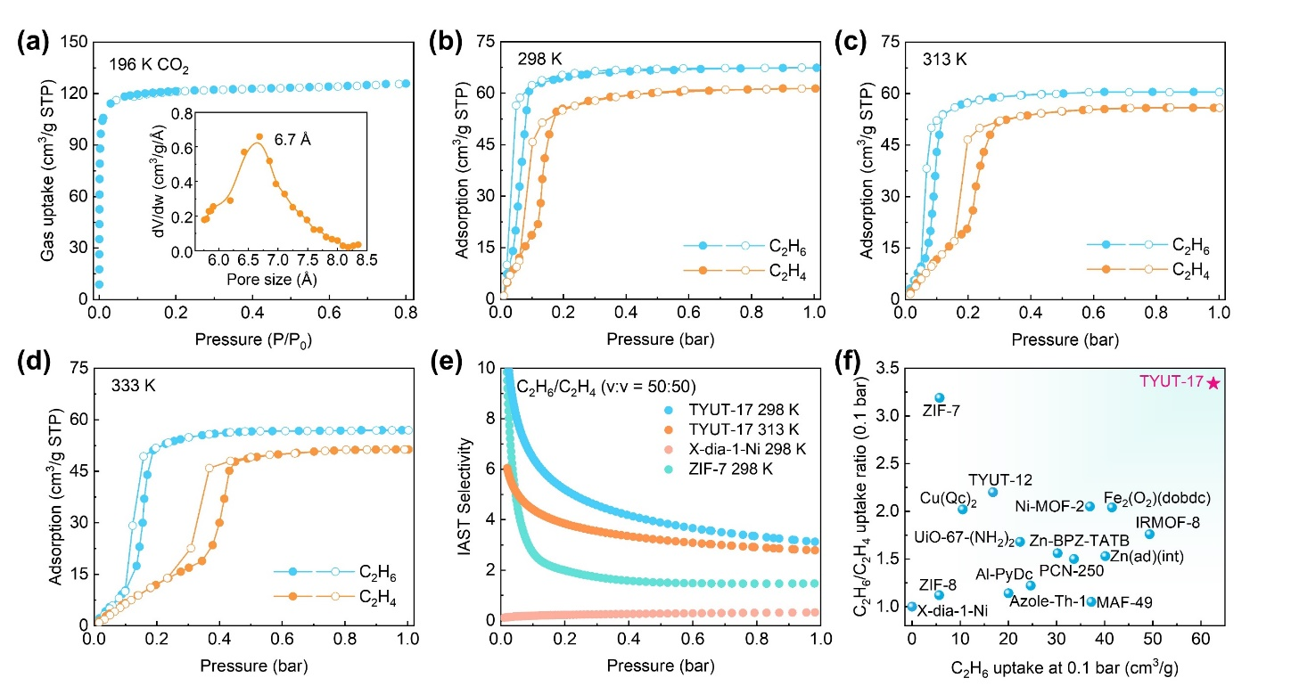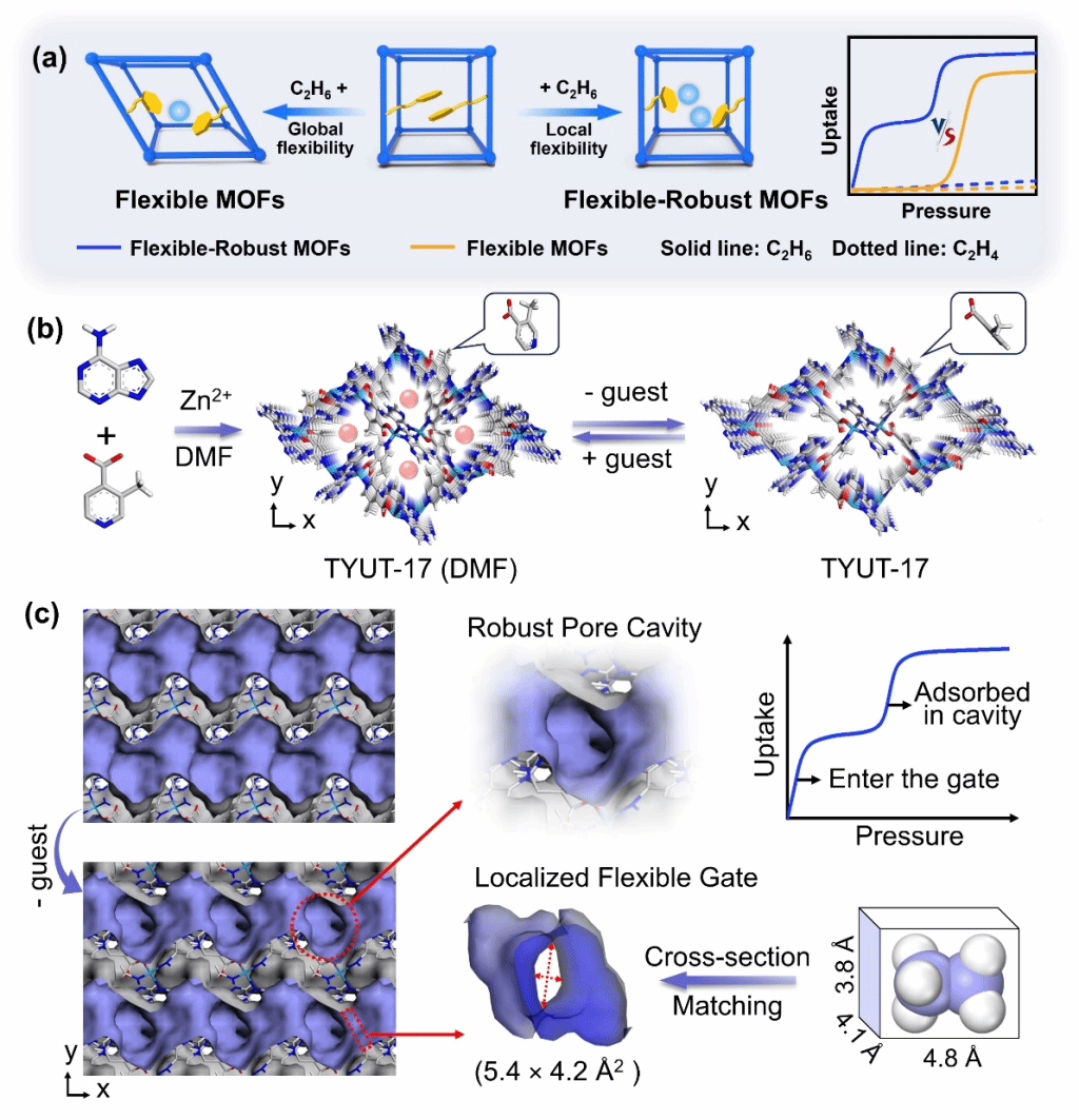 图1. TYUT-17材料中的乙烷诱导结构形变“柔性-刚性”吸附机制