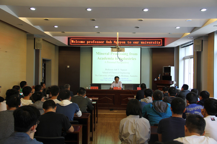 报告中,Anh V. Nguyen教授阐述了当前矿物加工工程专业发展所面临困境与新的挑战,他指出技术革新与多元化发展是解决这些问题的有效途径,并结合其研究课题阐述了重力分选与浮选两方面的技术革新。Anh V. Nguyen教授还介绍了国际矿物加工学科发展前沿及动态。Anh V. Nguyen教授对研究生提出的“如何写作高水平学术论文”问题作了详细的指导。