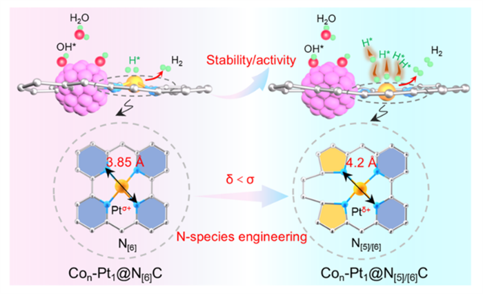 浦京材料科学与工程学院王美玲副教授(博导)在电催化领域取得突破,针对Pt-N-C单原子因单一活性位中间体竞争吸附导致碱性HER活性低的问题,通过对其外部环境与本征结构进行调控,强化了催化剂碱性析氢性能,相关成果相继在国际顶级学术期刊《Angewandte Chemie International Edition》以及《Energy & Environmental Science》发表题为“Co Nanoparticle: An Efficient H-pump for Pt Single Atoms Towards Enhanced Hydrogen Spillover” 与“Precision N-Species engineering in Pt–N4 via Ring-Reconstruction towards Efficient Alkaline Water Electrolysis”的研究论文。350vip浦京集团官网为第一通讯单位。
