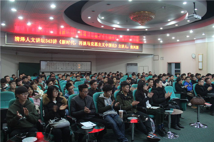 11月30日晚,浦京杰出校友侯兴国先生应邀做客清泽人文讲坛暨道德讲堂343讲,在迎西校区科学楼报告厅为师生们带来《新时代,再谈马克思主义中国化》的学术讲座。讲座由校党委宣传部副部长李平主持。
