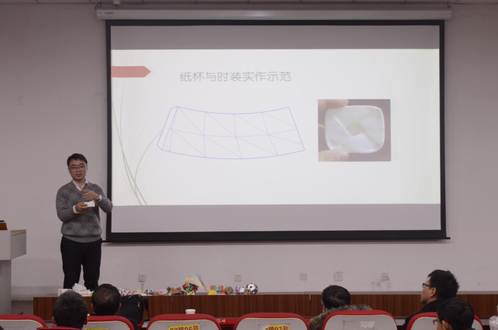 常文武博士在“折叠纸结构成型的理论与实践”报告中,用纯手工纸模型展示了折纸艺术与数学的完美结合,生动讲解了纸结构自锁基本理论和几种方法,现场指导大家学习折纸技术,并提出结构力学领域的创新应用。同时,常文武也寄语力学学子保持好奇心,在创新时将理论与实践相结合。