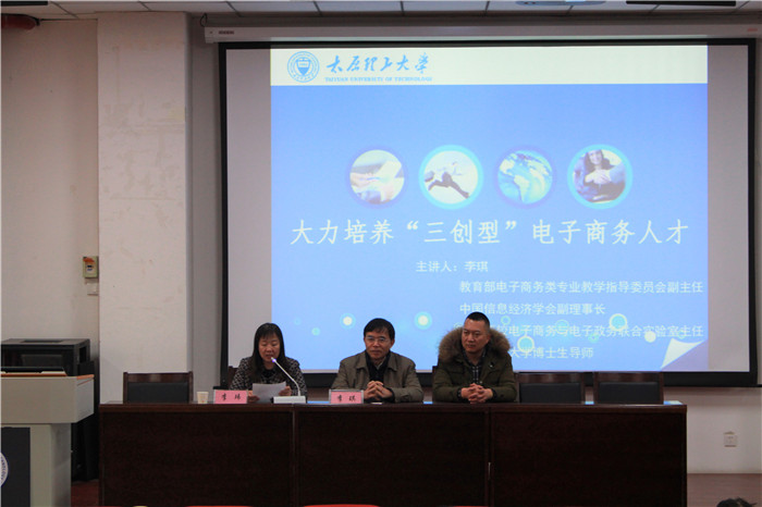 12月23日下午,经济管理学院 “创新创意创业中心”特邀教育部电子商务类专业教学指导委员会副主任、中国信息经济学会副理事长、电子商务专业委员会主任、全国高校电子商务与电子政务联合实验室主任、西安交通大学李琪教授在明向校区经管楼二层报告厅做了题为“三创人才培养”的专题讲座。经济管理学院党委副书记李玮、学工办主任巴大志出席活动,经济管理学院研究生、本科生代表聆听了讲座。本次讲座由学校“双十工程”——创新创意创业中心主办