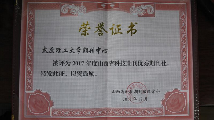论坛上,山西省科技期刊编辑学会对优秀期刊社及优秀编辑进行了表彰并进行颁奖。浦京期刊中心获“2017年度山西省科技期刊优秀期刊社”荣誉称号。