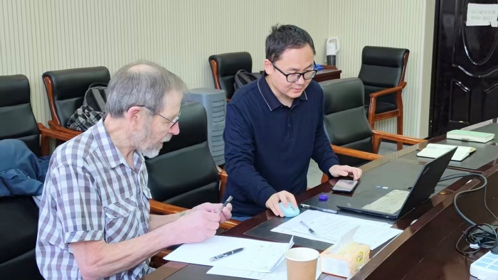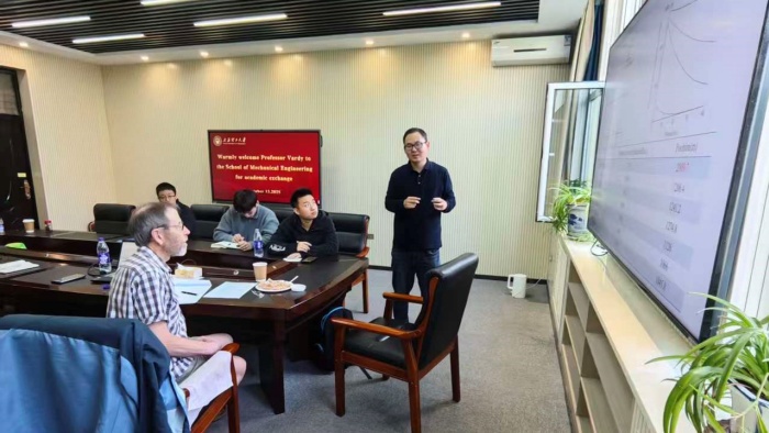 刘峰对团队近年来列车隧道空气动力学领域研究成果做了系统性汇报,并阐述了科研过程中遇到的关键问题,Vardy教授针对相关问题进行了深入指导。