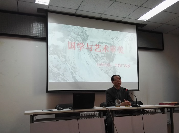 4月12日下午,在艺术学院D204会议室,山西大学李德仁教授应邀作了《国学与艺术审美》专题学术报告,此次报告由艺术学院美术系主任吴玉文副教授主持,学院美术相关学科的师生参加了报告会。